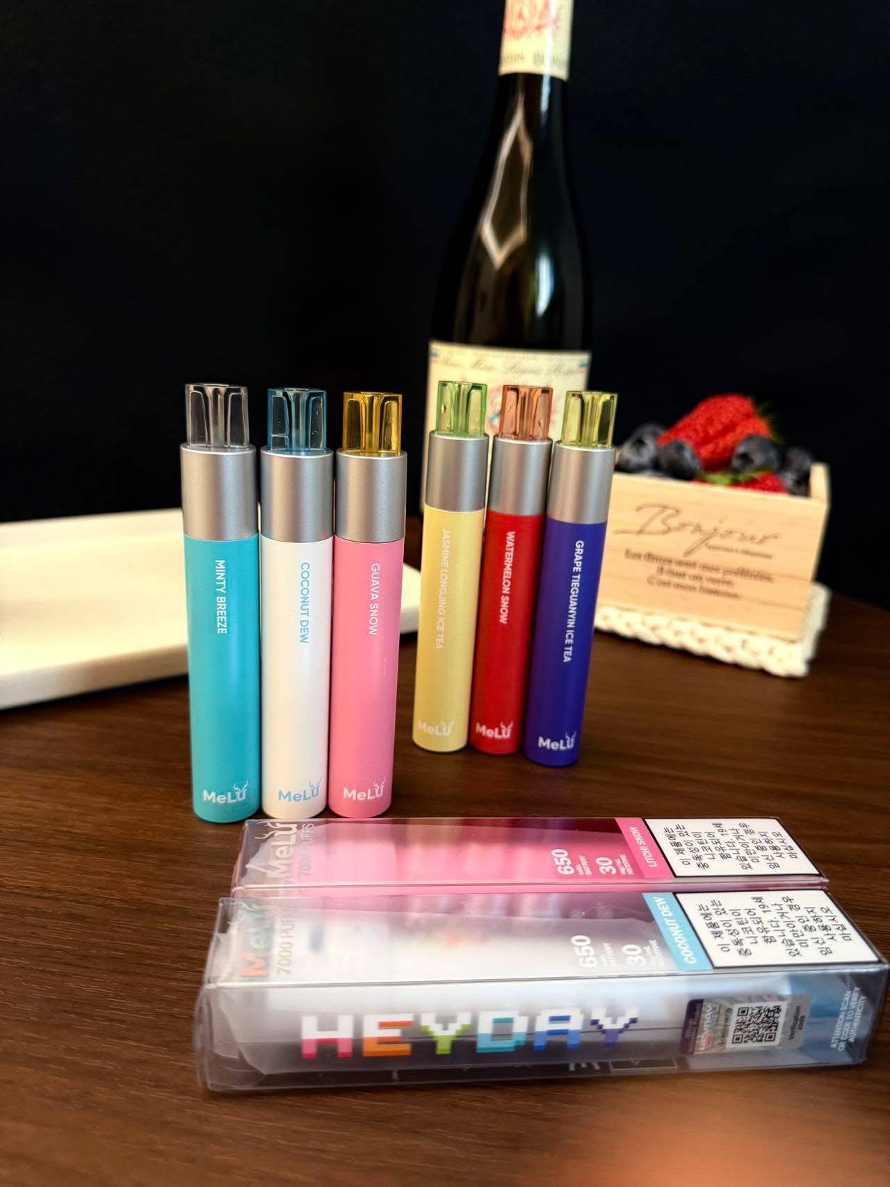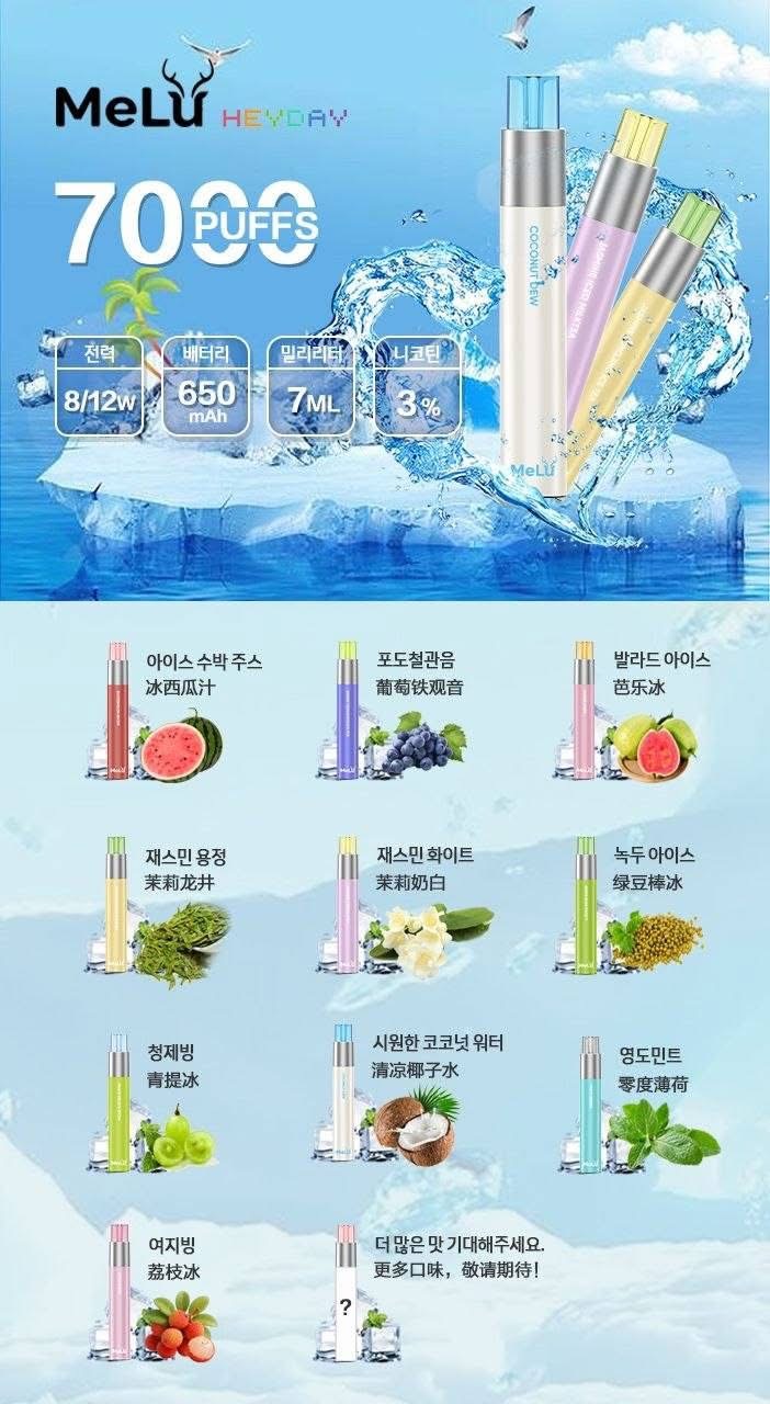 Melu米露一次性电子烟,每根7ml油量,透明油仓,颜值高,并且带有防尘帽,配备650mAh电池,8/12w功率,口感清爽不油腻,甜度适中。